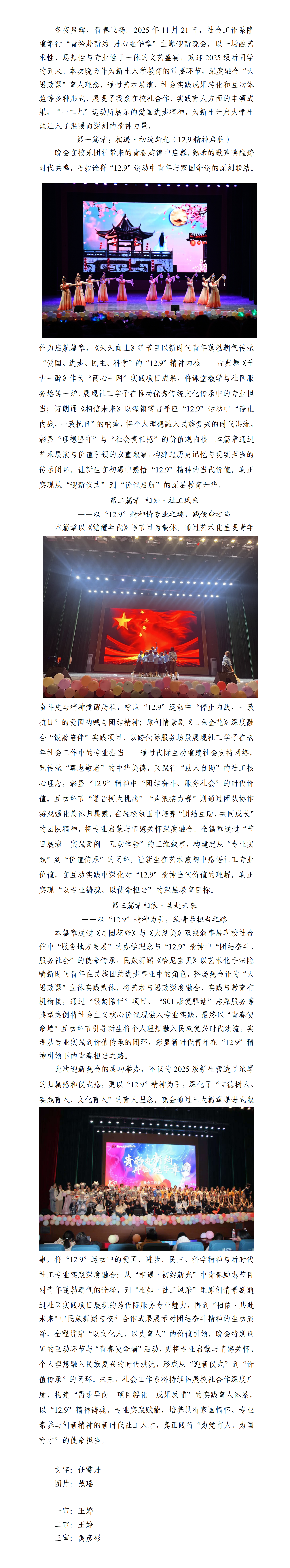 社会工作系“青衿赴新约·丹心继华章”迎新晚会——以“12.9”精神铸魂以实践育人赋能